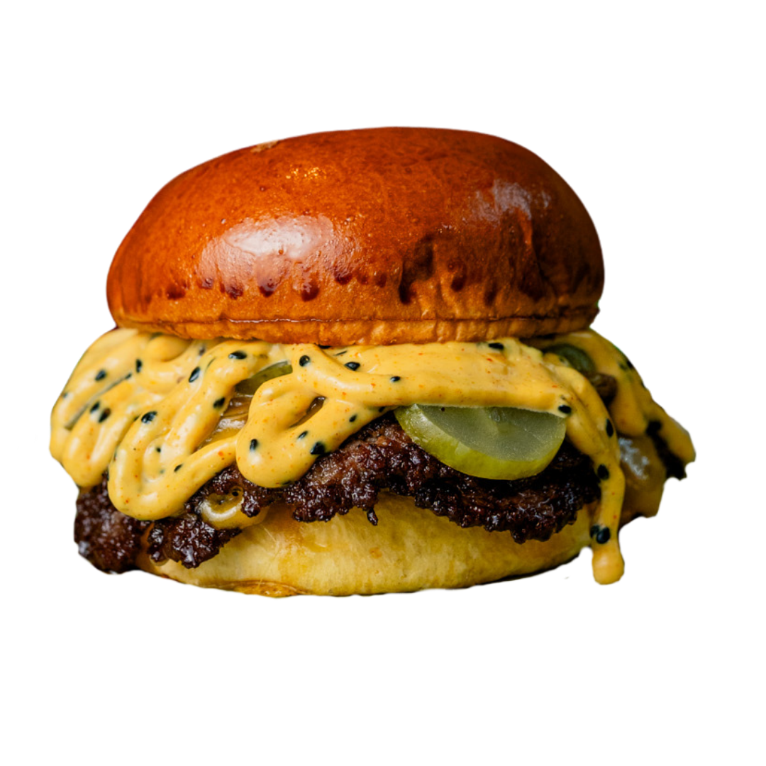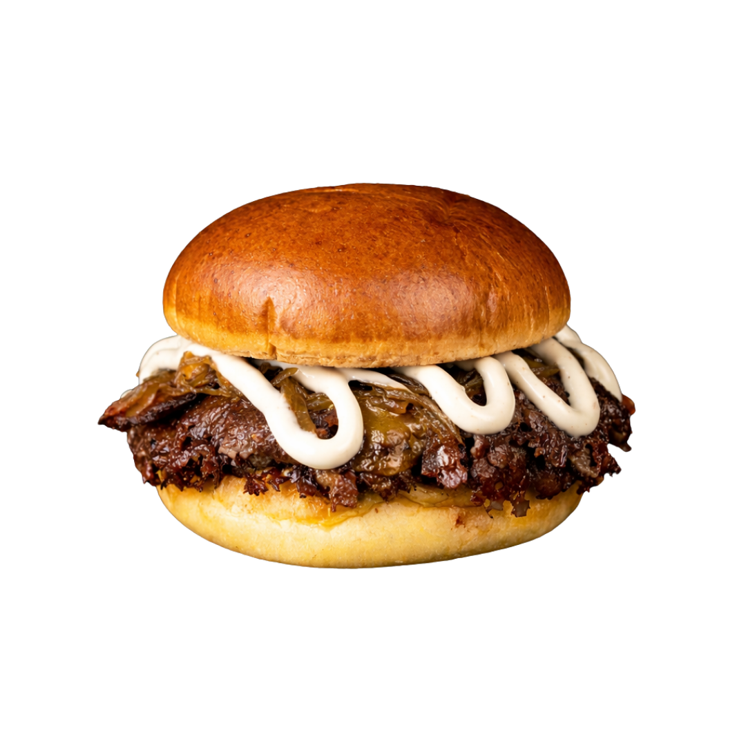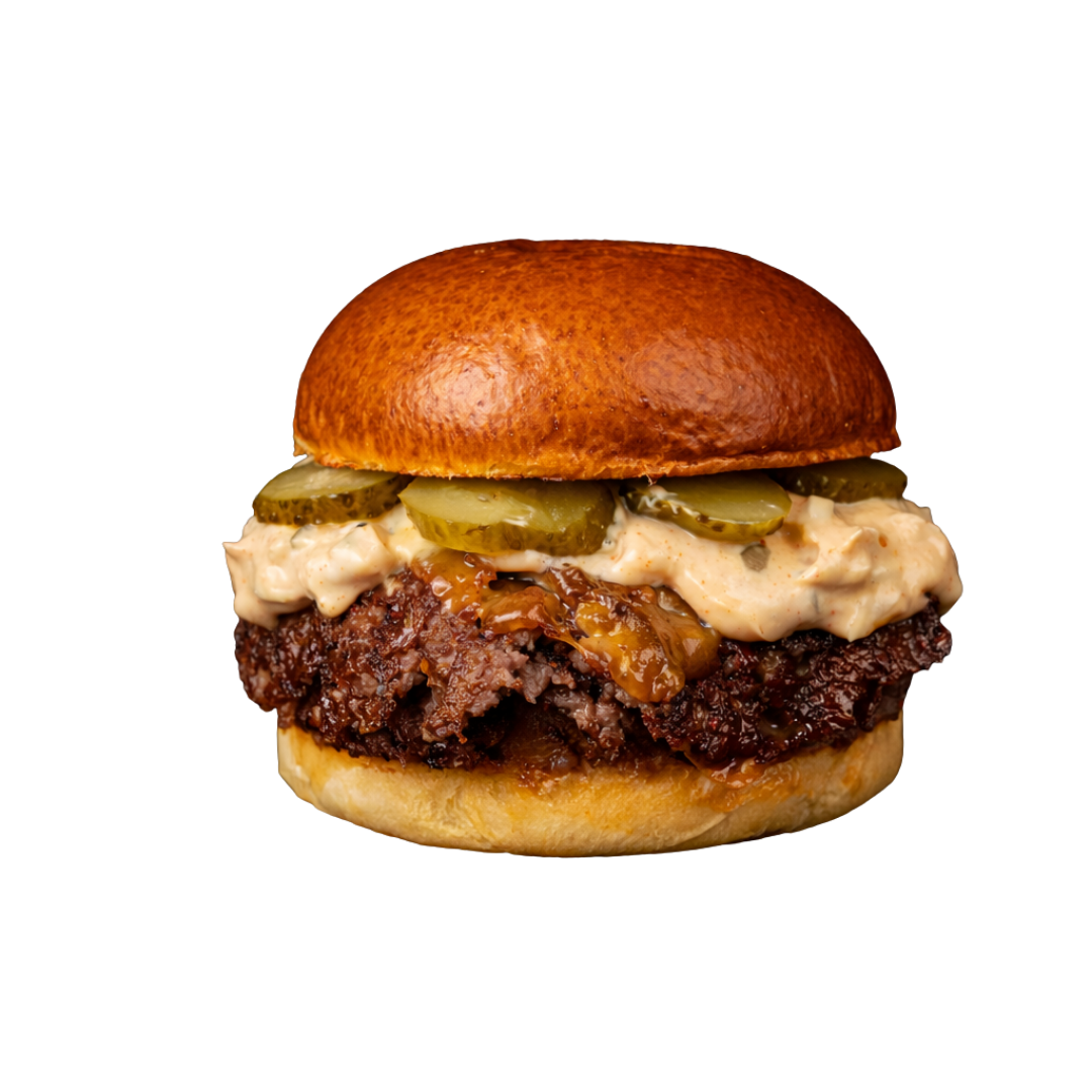 Carne smash x2, queso cheddar, beicon, cebolla caramelizada y salsa mayo trufada.